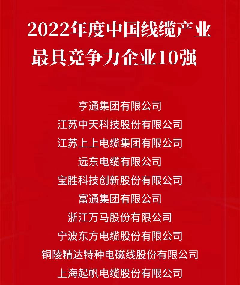 ▲ “2022年度中國(guó)線纜行業(yè)最具競(jìng)爭(zhēng)力企業(yè)10強(qiáng)”榜單