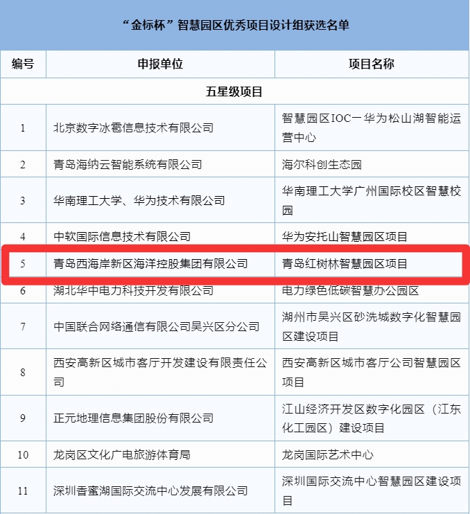 旅業(yè)動態(tài) | 青島紅樹林智慧園區(qū)項目入選“金標杯”智慧園區(qū)優(yōu)秀項目